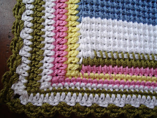 Fiz esse caminho com restos de linhas em crochê tunisiano. Ficou bem colorido e grossinho.O barrado é com ponto alto e um biquinho.
